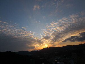2025年12月31日17時15分太陽の日の入りです。我が家の霊園から、、 今年も多くの方々にお世話になりました。そして、多くの作品が出来、驚かされる作品もあり、私も勉強させられことも多々ありました。